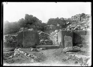 Part of a collection of images of the BSA's 1920s excavations at Mycenae. The original description in the SPHS register reads: "Mycenae: South House the closed door".