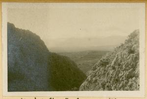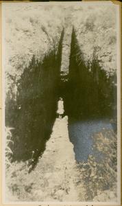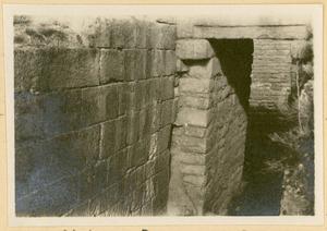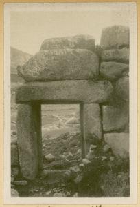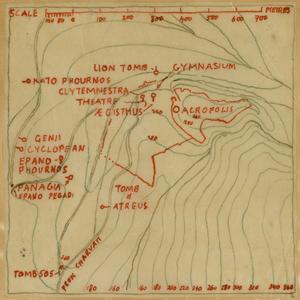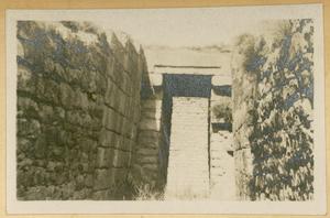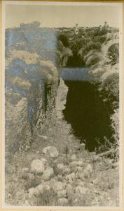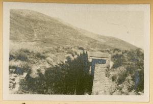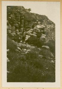 [PEN/7/2/1/106], Photograph of man and dog [Spiro Dassis and Nero], at “Mycenaean Bridge below H. Elias [Prophet Elias Mountain] on Road out to Fort”, Mycenae, [c. 30 Jan – 3 Feb 1928]