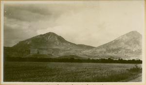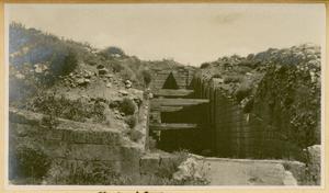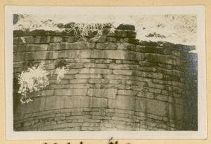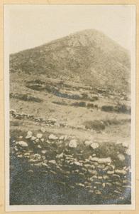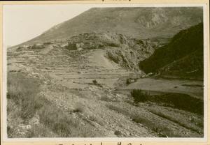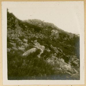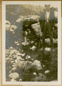 Photograph of man and dog [Spiro Dassis and Nero], at “Mycenaean Bridge below H. Elias [Prophet Elias Mountain] on Road out to Fort”, Mycenae