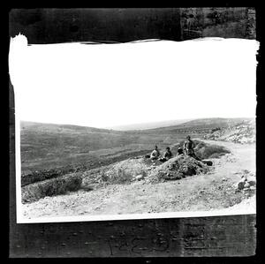 Part of a collection of images of the BSA's 1920s excavations at Mycenae. The original description in the SPHS negative register reads: "Mycenae: Tomb 502, sifting earth from". Recorded in the register as from the 1921 season.