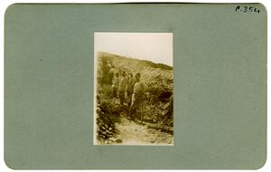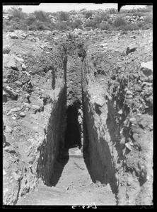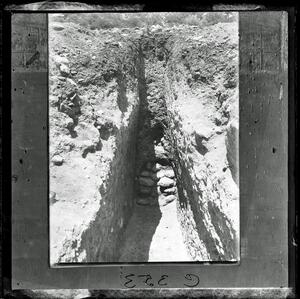 Part of a collection of images of the BSA's 1920s excavations at Mycenae. The original description in the SPHS negative register reads: "Mycenae: Tomb 502, door before opening". Recorded in the register as from the 1921 season.