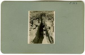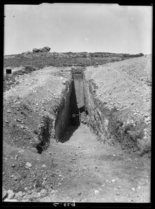 Part of a collection of images of the BSA's 1920s excavations at Mycenae. The original description in the SPHS negative register reads: "Mycenae: Tomb 505, digging dromos". Recorded in the register as from the 1921 season.