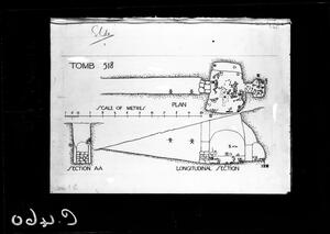 Part of a collection of images of the BSA's 1920s excavations at Mycenae. The original description in the SPHS negative register reads: "Mycenae: Tomb 518, plans & sections". Recorded in the register as from the 1922 season.