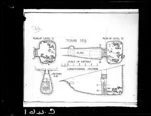 Part of a collection of images of the BSA's 1920s excavations at Mycenae. The original description in the SPHS negative register reads: "Mycenae: Tomb 529, plans & sections". Recorded in the register as from the 1922 season.
