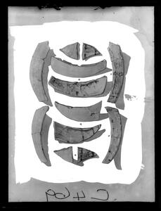 Part of a collection of images of the BSA's 1920s excavations at Mycenae. The original description in the SPHS negative register reads: "Mycenae: Tomb 515, ivory fragments". Recorded in the register as from the 1922 season.