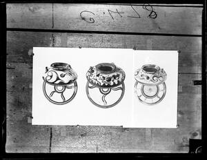 Part of a collection of images of the BSA's 1920s excavations at Mycenae. The original description in the SPHS negative register reads: "Mycenae: Tomb 529, vases 422, 418, 421". Recorded in the register as from the 1922 season.
