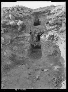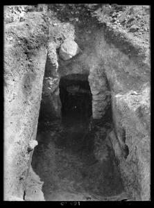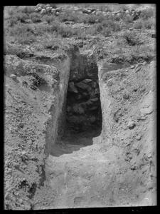 Part of a collection of images of the BSA's 1920s excavations at Mycenae. The original description in the SPHS negative register reads: "Mycenae, Tomb 513, door of chamber".