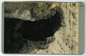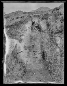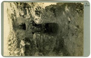 Part of a collection of images of the BSA's 1920s excavations at Mycenae. The original description in the SPHS negative register reads: "Mycenae, Tomb 524 pits in chamber NW". Recorded in the register as from the 1922 season.