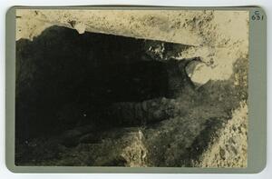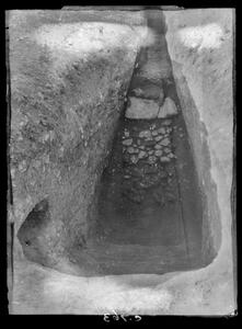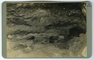 Part of a collection of images of the BSA's 1920s excavations at Mycenae. The original description in the SPHS negative register reads: "Mycenae, Tomb 527, burials in dromos". Recorded in the register as from the 1922 season.