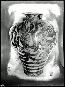 Part of a collection of images of the BSA's 1920s excavations at Mycenae. The original description in the SPHS negative register reads: "Mycenae, Tomb 529, octopus vase". Recorded in the register as from the 1922 season.