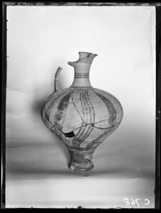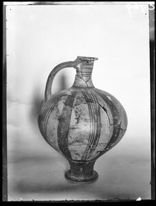 Part of a collection of images of the BSA's 1920s excavations at Mycenae. The original description in the SPHS negative register reads: "Mycenae, Jug #448 from tomb 533". Recorded in the register as from the 1922 season.
