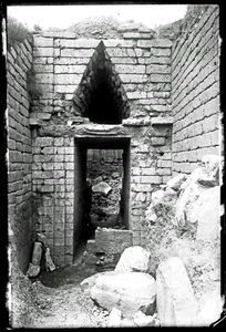 The original description in the SPHS register reads: "Mycenae: detail of interior of Mme. Schliemann's treasury".