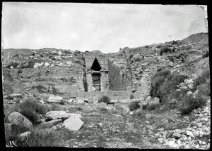 Part of a collection of images of the BSA's 1920s excavations at Mycenae. The original description in the SPHS negative register reads: "Mycenae, Tomb of Clytemnestra & theatre". Recorded in the register as from the 1922 season.