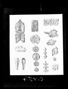 Part of a collection of images of the BSA's 1920s excavations at Mycenae. The original description in the SPHS register reads: "Bronze mirror from grave in dromos of tomb of Clytemnestra, detail on a large scale".