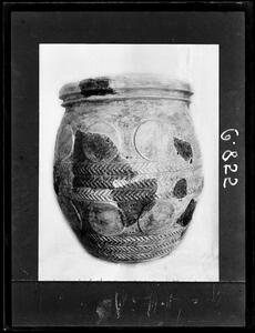Part of a collection of images of the BSA's 1920s excavations at Mycenae. The original description in the SPHS register reads: "Steatite pithos reconstructed, from Clytemnestras tomb".