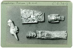 Part of the collection of images, 1930-39, of the British School at Athens excavations at Perachora, Corinthia. The original description in the SPHS register reads: "Perachora ivories, 7th century (4)".