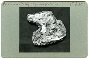 Part of the collection of images, 1930-39, of the British School at Athens excavations at Perachora, Corinthia. The original description in the SPHS register reads: "Perachora, ivory Pegasus protome". No negative listed in the SPHS register.