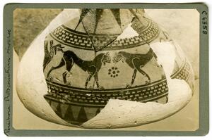 Part of the collection of images, 1930-39, of the British School at Athens excavations at Perachora, Corinthia. The original description in the SPHS register reads: "Perachora, proto-Corinthian oinochoe". No negative listed in the SPHS register.