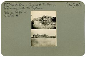 Part of the collection of images, 1930-39, of the British School at Athens excavations at Perachora, Corinthia. The original description in the SPHS register reads: "Perachora: 2 views of Heraeum promontory, with lighthouse".