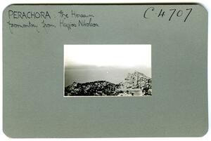 Part of the collection of images, 1930-39, of the British School at Athens excavations at Perachora, Corinthia. The original description in the SPHS register reads: "Perachora: Heraeum promontory from Hagios Nikolaos".