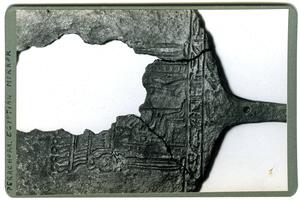 Part of the collection of images, 1930-39, of the British School at Athens excavations at Perachora, Corinthia. The original description in the SPHS register reads: "Perachora Egyptian mirror". No negative listed in the SPHS register.