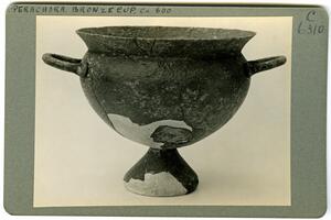 Part of the collection of images, 1930-39, of the British School at Athens excavations at Perachora, Corinthia. The original description in the SPHS register reads: "Perachora bronze cup ca. 600". No negative listed in the SPHS register.