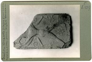 Part of the collection of images, 1930-39, of the British School at Athens excavations at Perachora, Corinthia. The original description in the SPHS register reads: "Perachora terracotta plaque from same mould as one from Argive Heraeum". No negative listed in the SPHS register.