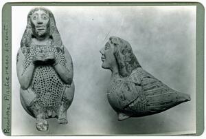 Part of the collection of images, 1930-39, of the British School at Athens excavations at Perachora, Corinthia. The original description in the SPHS register reads: "Perachora terracotta plastic vases: 6th century".