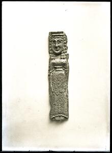 Part of the collection of images from the 1936 Exhibition of Minoan Civilization and the first 50 years work of the BSA at Burlington House, London. The object is from the 1930-39 British School at Athens excavations at Perachora, Corinthia. The original description in the SPHS register reads: "Bone figure of Hera, probably Spartan (700-650 BC) from Perachora".