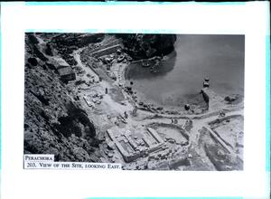 Part of the collection of images from the 1936 Exhibition of Minoan Civilization and the first 50 years work of the BSA at Burlington House, London, copied from BSA SPHS 01/6562.C6356. The original description in the SPHS register reads: "Perachora, view of site looking East ".
