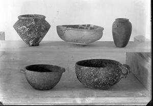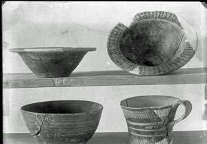 Part of a group of images from the British School at Athens excavations at Palaikastro, Crete in the 1902-1905. The original description in the SPHS negative register reads: "Palaikastro: LMI vases".
