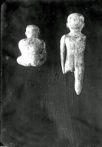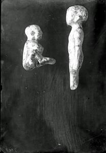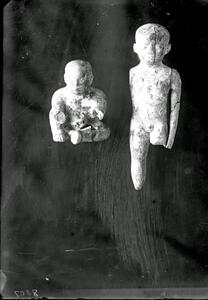 Part of a group of images from the British School at Athens excavations at Palaikastro, Crete in the 1902-1905. The original description in the SPHS negative register reads: "Palaikastro: ivory statuettes".