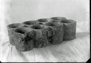 Part of a group of images from the British School at Athens excavations at Palaikastro, Crete in the 1902-1905. The original description in the SPHS negative register reads: "Palaikastro: composite stone vase".