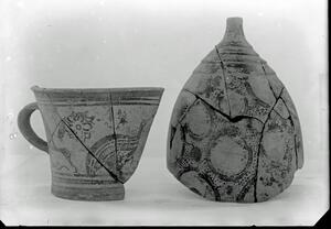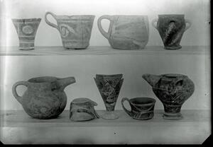 Part of a group of images from the British School at Athens excavations at Palaikastro, Crete in the 1902-1905. The original description in the SPHS negative register reads: "Palaikastro: LMIII vases".