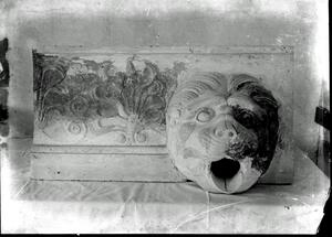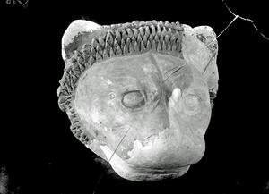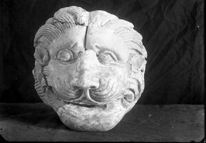 Part of a group of images from the British School at Athens excavations at Palaikastro, Crete in the 1902-1905. The original description in the SPHS negative register reads: "Palaikastro: terracotta lion's head".