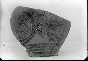 Part of a group of images from the British School at Athens excavations at Palaikastro, Crete in the 1902-1905. The original description in the SPHS negative register reads: "Palaikastro: Kamares ware (BSA ix, p. 305)".