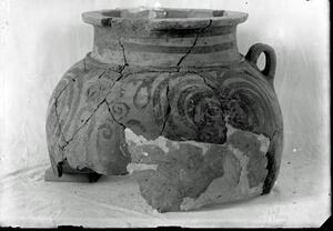 Part of a group of images from the British School at Athens excavations at Palaikastro, Crete in the 1902-1905. The original description in the SPHS negative register reads: "Palaikastro: LMII vase".