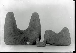 Part of a group of images from the British School at Athens excavations at Palaikastro, Crete in the 1902-1905. The original description in the SPHS negative register reads: "Palaikastro: stone fruit stand". No negative is listed in the SPHS register.
