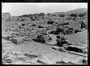 Part of a group of images from the British School at Athens excavations at Palaikastro, Crete in the 1902-1905. The original description in the SPHS negative register reads: "Palaikastro: excavations, main street from N. W.".