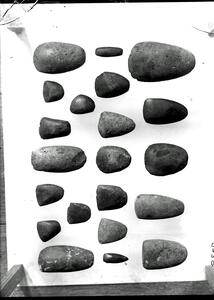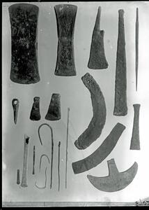 Part of a group of images from the British School at Athens excavations at Palaikastro, Crete in the 1902-1905. The original description in the SPHS negative register reads: "Palaikastro: celts".