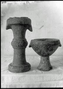 Part of a group of images from the British School at Athens excavations at Palaikastro, Crete in the 1902-1905. The original description in the SPHS negative register reads: "Palaikastro stone vases".