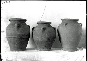 Part of a group of images from the British School at Athens excavations at Palaikastro, Crete in the 1902-1905. The original description in the SPHS negative register reads: "Palaikastro: LMI and LMII vases".