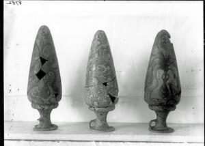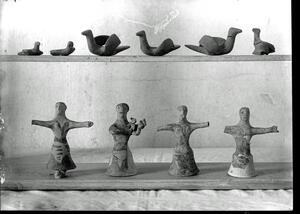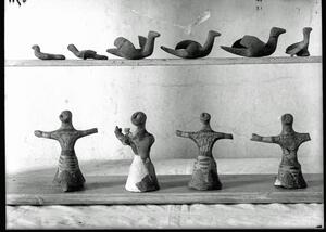 Part of a group of images from the British School at Athens excavations at Palaikastro, Crete in the 1902-1905. The original description in the SPHS negative register reads: "Palaikastro: ritual objects, shrine of snake goddess (BSA X p.217)".