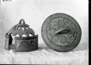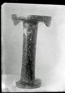 Part of a group of images from the British School at Athens excavations at Palaikastro, Crete in the 1902-1905. The original description in the SPHS negative register reads: "Palaikastro: steatite lamp stand".