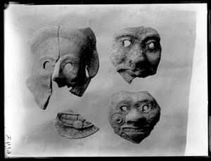 Part of the collection of images, 1906-1910, of the British School at Athens excavations at Sparta, Laconia. The original description in the SPHS register reads: "Sparta: Masks".