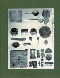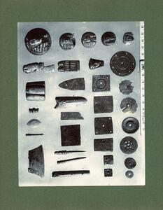 Part of the collection of images, 1906-1910, of the British School at Athens excavations at Sparta, Laconia. The original description in the SPHS register reads: "Sparta: bronzes".