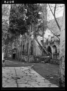 View of the monastic buildings. A note at the back of the photograph reads: 'Kaisariani, Attica', 'Monastic Buildings'. Further annotaion in pencil survives.