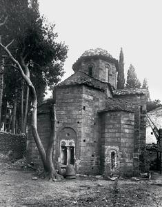 View from the east (east façade). A note at the back of the photograph reads: 'Kaisariani', 'Attica', 'East End'. Further annotaion in pencil survives.