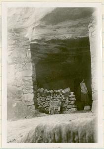 View inside cave including a woman looking around [Hilda White, Isabel Seltman, Joan Lloyd or Mrs Emmett].