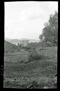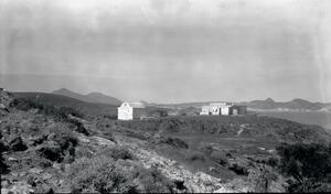 Part of a group of images from the continuation of excavations in 1910-1911 at Phylakopi on the island of Melos previously conducted by the British School at Athens from 1896-1899. The original description in the SPHS register reads: "Melos: Phylakopi. Panorama. BSA house".